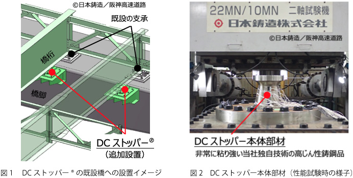 日本鋳造株式会社は、阪神高速道路株式会社とともに、損傷制御型変位抑制装置(DCストッパー®:当社と阪神高速道路株式会社との登録商標)の開発に関する共同研究を実施し、このたび製品の基本的な開発が完了いたしました。